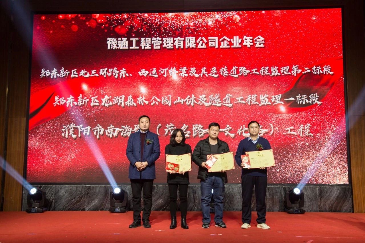 本次年會中,最讓人動容的是2018年度表彰大會環(huán)節(jié)。公司共計頒發(fā)了“2018年度優(yōu)秀團隊”獎、“2018年度優(yōu)秀分公司”獎、獲得“2018年度市政工程金杯”獎項目、獲得“2018年度國家優(yōu)質(zhì)金杯”獎項目、“2018年度項目優(yōu)秀員工”獎、“2018年度優(yōu)秀總監(jiān)”獎、“2018年度公司優(yōu)秀員工”獎七個獎項以嘉獎為公司發(fā)展默默付出的優(yōu)秀員工們。因為每一位豫通家人的付出,才有了不斷前行、共創(chuàng)輝煌的豫通管理!